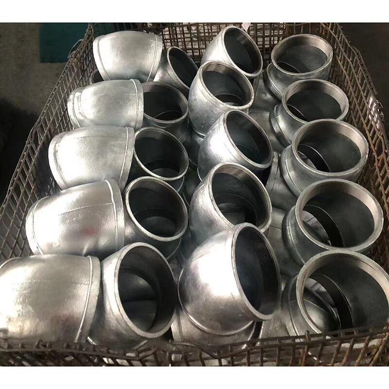 The China ANSI B16.3 Pipe Elbow Manufacturer specializes in producing high-quality 45-degree elbows made from malleable iron. These elbows have a 4-inch diameter (DN100) and are hot-dip galvanized for enhanced corrosion resistance. They feature NPT threads that comply with ASME B1.20.1 standards, ensuring a secure and reliable connection in various piping systems. Designed for durability and performance, these elbows are ideal for applications requiring robust and long-lasting components.