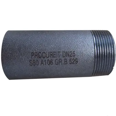ASME B36.10M Seamless Nipple Supplier in China: ASME B36.10M Seamless Nipple, A106 Grade B, DN25, Wall Thickness SCH 80, 100mm, PE x Screw NPT End.