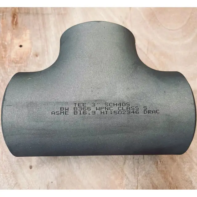 This ASTM B366 WPNC Equal Tee, supplied in China, is manufactured in accordance with ASME B16.9 standards. Made from Monel 400, it features a 3-inch diameter with an outer diameter of 88.9 mm and a wall thickness of 5.49 mm, conforming to Schedule SCH 40S specifications. This equal tee provides excellent corrosion resistance and durability for various applications.