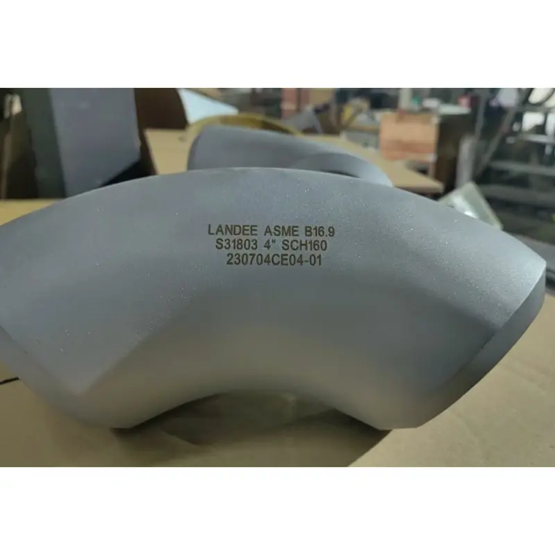 The 90-degree seamless elbow, manufactured from duplex stainless steel (ASTM A815 UNS S31803), conforms to ASME B16.9 standards. With a 4-inch (DN100) size and a wall thickness of SCH 160, this elbow offers exceptional strength, corrosion resistance, and reliability in high-pressure systems. Designed for seamless performance, it is ideal for applications requiring durability and precise flow direction control in challenging industrial environments.