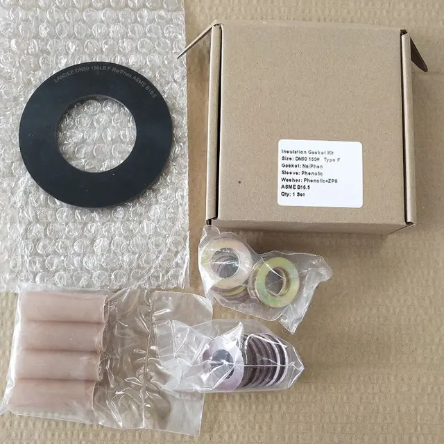 The Flange Insulation Kits, manufactured to ASME B16.5 standards, are designed for electrical isolation and corrosion prevention in pipeline systems. This kit includes a neoprene-faced phenolic gasket, phenolic resin sleeve, and phenolic + ZPS washers, ensuring reliable insulation and sealing. Available in a 2-inch size, Class 150 LB (DN50, PN20), it provides effective protection against galvanic corrosion and leakage, making it ideal for industrial and offshore applications.